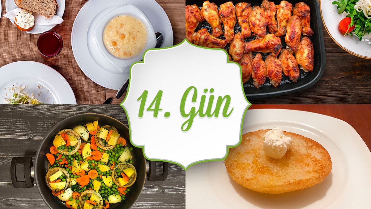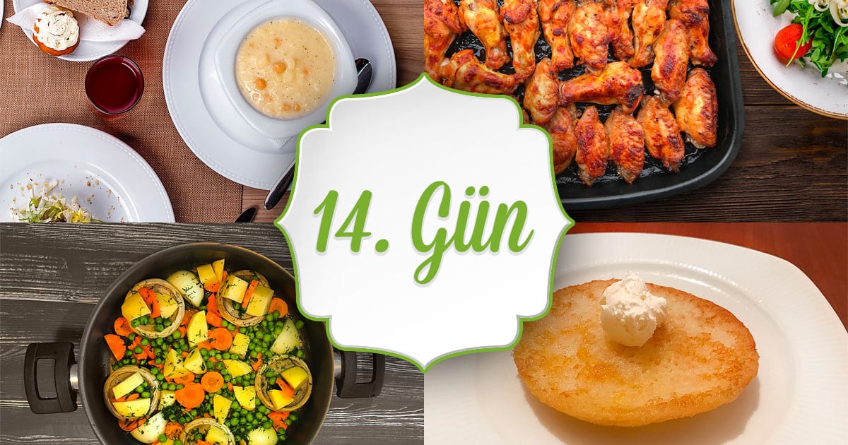 14. Günde Ramazanın ikinci haftasını geride bıraktık. Haftanın son günü için iftar menüsünü doyurucu ve fırında piştiği için sağlıklı bir tavuk tarifi ile oluşturduk. Çok hafif bir yemeğimiz olduğu için yanına doyurucu Nohutlu Kesme Çorba tarifi hazırladık. İlk haftanın ilk günü tercih ettiğimiz gibi Ramazanın 14. Gününde de zeytinyağlı tercih ediyoruz ve şimdi tam zamanı olan Zeytinyağlı Enginar tarifi veriyoruz! Sonrasında üzerindeki enfes kaymağıyla birlikte Ramazan sofralarının olmazsa olmazı Yassı Kadayıf tatlısıyla iftarımızı ve ikinci haftamızı bitiriyoruz. Hamdolsun, şükürler olsun...
