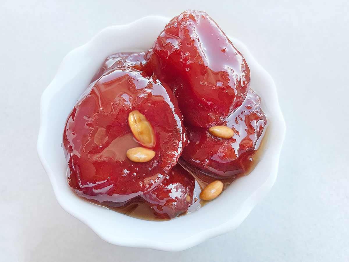 Bozcaada'ya özgü bademle yapılan lezzetlimi lezzetli domates reçeli. Domates reçeli mi olur demeyin, denemeden karar vermeyin... Tarifi İçin Tıklayın!