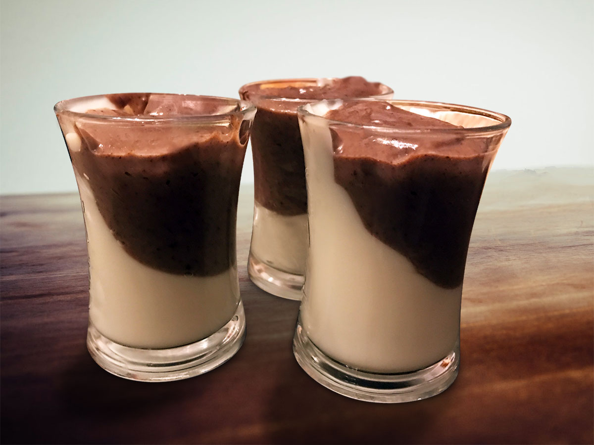 Şerbetli tatlılardan kaçanlar için nefis bir sütlü tatlı. Farklı sunumuyla misafirlerinizi şaşırtacak, kaşık kaşık yenesi, bardakta hem kakaolu hem sade enfes ve hafif iki renkli muhallebi...