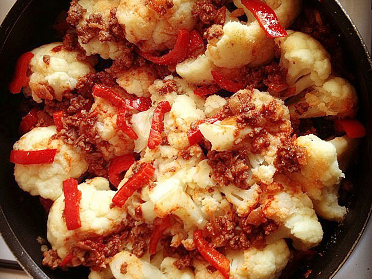Kıymalı karnabahar yemeğinizi kırmızı biberle daha lezzetli bir hale getirebilirsiniz. Hem de sadece 30 dakikada: Kıymalı Karnabahar Tarifi