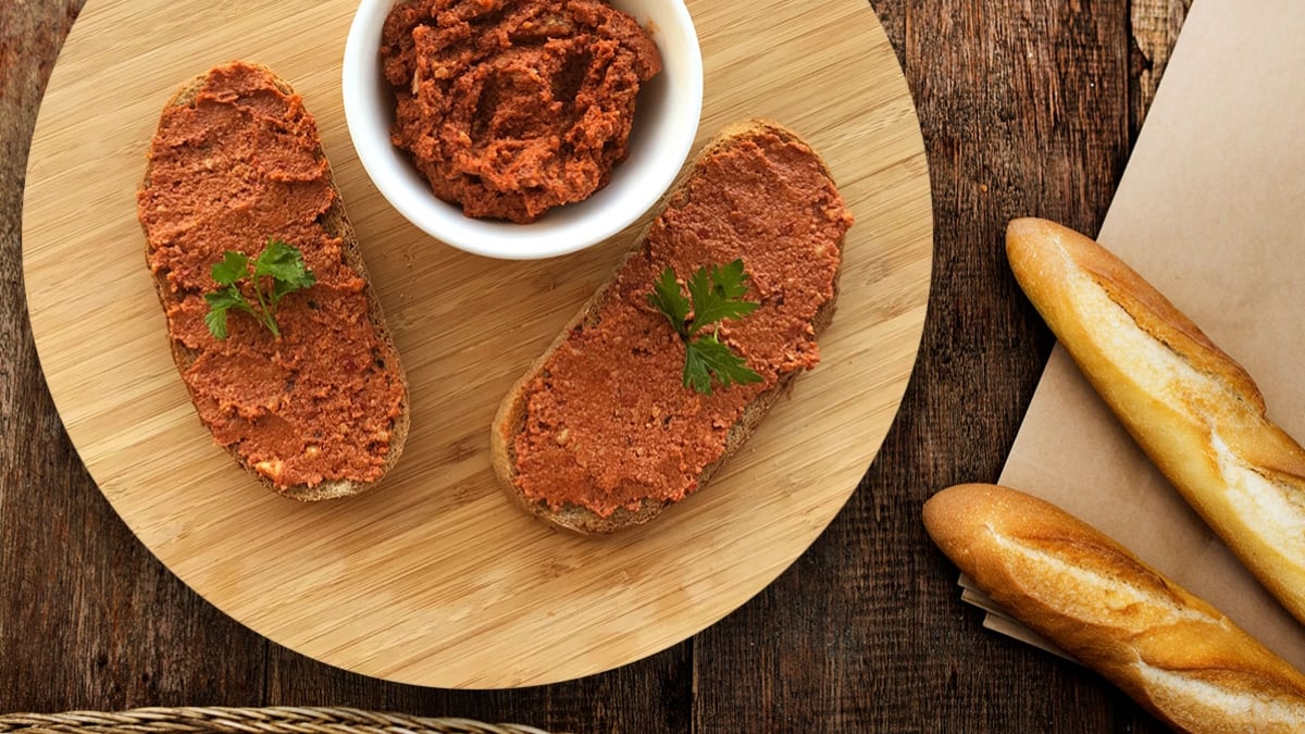 3 yemek kaşığı zeytinyağını küçük bir tavada kızdırıp üzerine kabuklarını soyduğumuz 5 diş sarımsağı rendeliyoruz. 2 yemek kaşığı domates ve 3 yemek kaşığı biber salçasını ekleyip kısık ateşte, kokusu çıkana kadar kavuruyoruz. Üzerine ince çekilmiş 1 su bardağı ceviz içini katıp yağı çıkması için karıştırıyoruz. Son olarak pul biberi de ekleyip karıştırdıktan sonra salça karışımını ocaktan alıp soğumaya bırakıyoruz. Bir kapta 1 su bardağı ince çekilmiş bayat ekmek içiyle hazırladığımız salçalı sosu karıştırıyoruz. Ekmek dilimleri üzerine sürüp servis yapabilirsiniz…