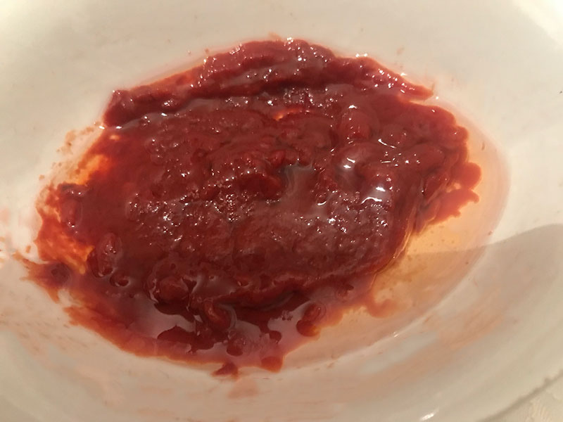 Bir kapta 1 tatlı kaşığı domates salçası, 2 tatlı kaşığı ketçap, 1 tatlı kaşığı kekik ve 4 yemek kaşığı sıvı yağı çatal yardımıyla çırpıyoruz.