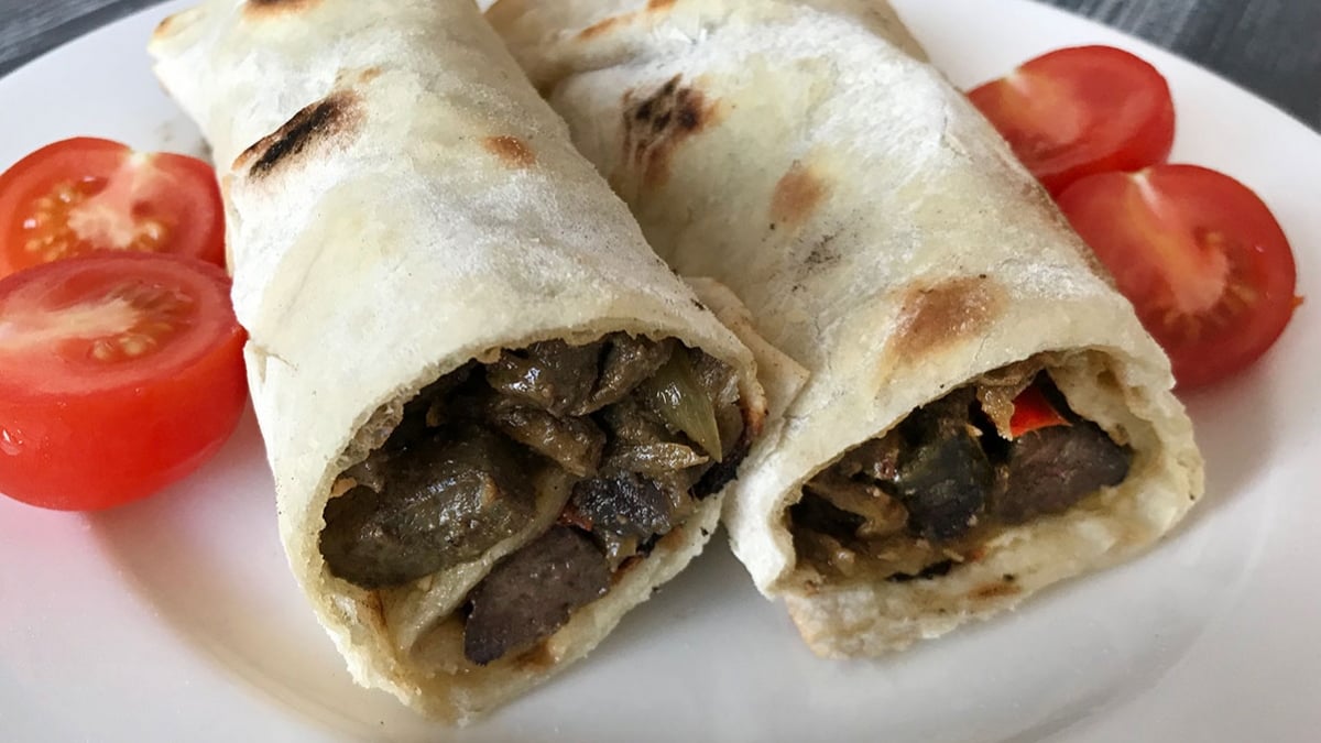 Lavaşını bile kendinizin yapacağı nefis bir dürüm tarifi veriyoruz: Ciğerli Dürüm. Şöyle soğan ve kapya biberle lezzetlenmiş ciğer kavurma ve yumuşacık bir lavaş...