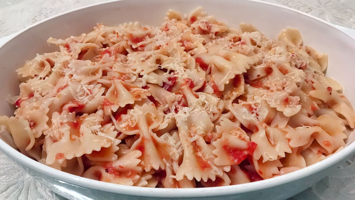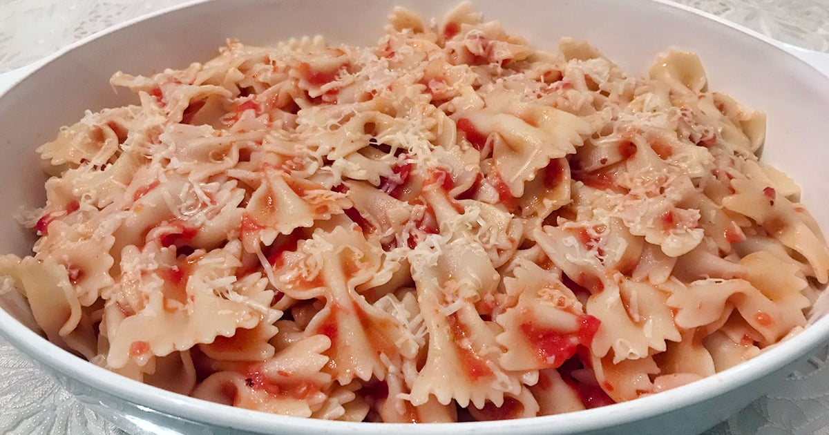 Tereyağıyla hazırladığımız mis gibi kokan domates sos ile birleştirdiğimiz kelebek makarna ve üzerinde eriyen parmesan peyniri... Hem kolay hem de lezzetli bir tarif!