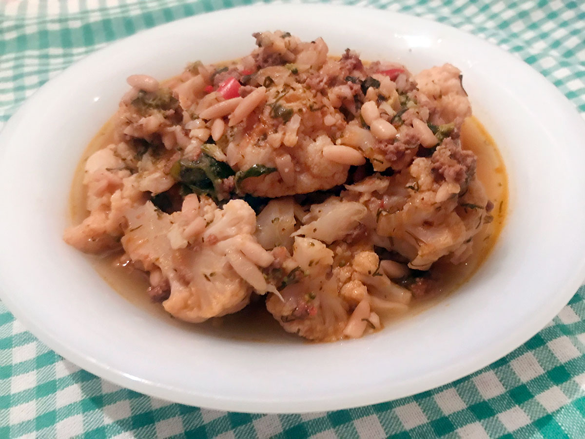 9- Cauliflower Stew with Ground Meat and Barley Orzo Recipe