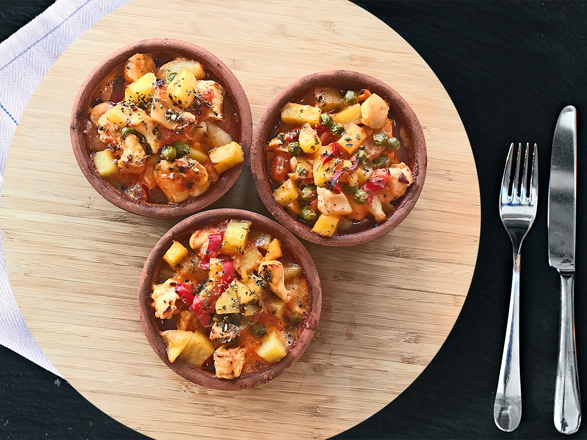 A light and flavor-packed dish where you'll enjoy dipping bread into the clay pot — Click for the Chicken Güveç Recipe!