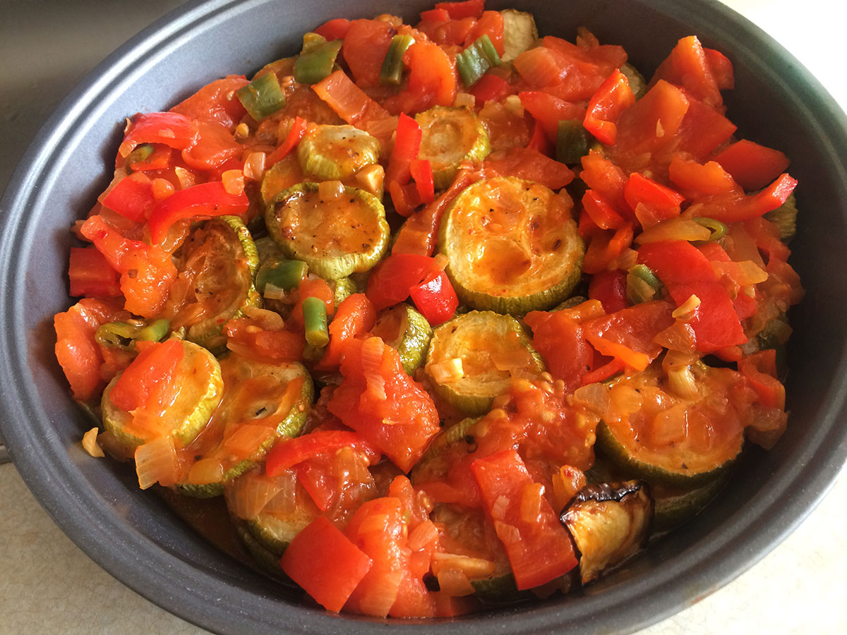 How about a healthy, juicy baked dish — no frying hassle — with plenty of tomatoes, onions, and garlic?