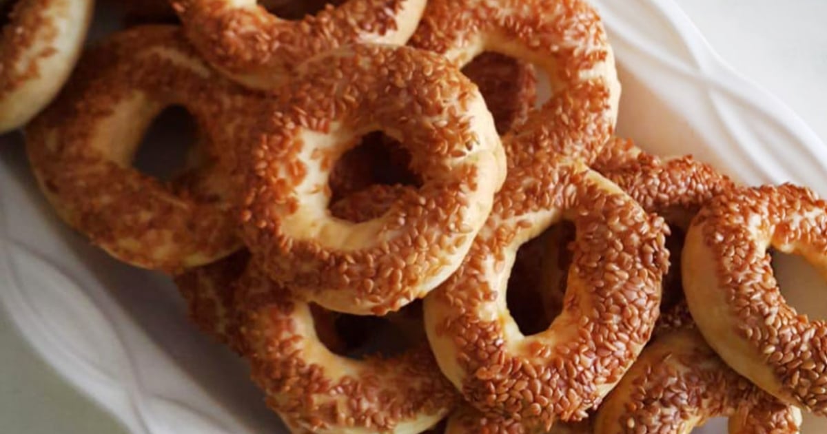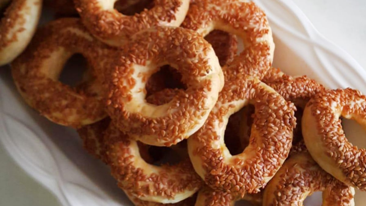 Bir kapta 2.5 su bardağı un, 1 tane yumurta sarısı, 1 yemek kaşığı yoğurt, 1 yemek kaşığı sirke, 1 tatlı kaşığı tuz, 1 tatlı kaşığı mahlep, 250 gram hamur işi margarini, 1 çay bardağı sıvı yağ ve 1 paket kabartma tozunu karıştırıp harmanlıyoruz ve hamur haline getiriyoruz. Hazırladığımız hamurlara simit şekli veriyoruz. Simitleri önce yumurta beyazına sonra da susama batırıyoruz. Fırın tepsisine diziyoruz ve 180 derecelik fırında kızarana kadar pişiriyoruz.