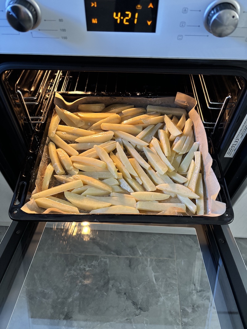 Fırınının "fanlı" (turbo) modunu kullanmak, sıcak havanın tepsinin her yerine eşit dağılmasını sağlar ve patateslerin her tarafının aynı anda, eşit şekilde çıtırlaşmasına yardımcı olur. Tepsinin yerini fırınlamanın ortasında değiştirmek de (alt-üst) faydalı olabilir.