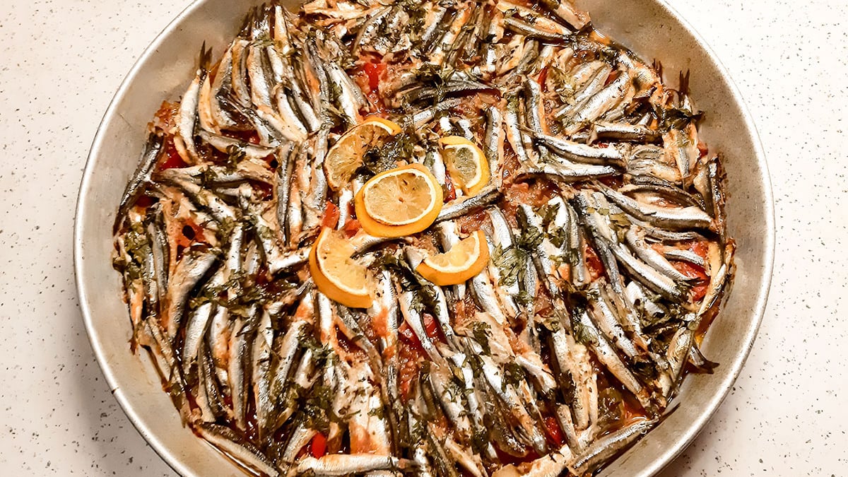1 tatlı kaşığı tuz ve 1 tatlı kaşığı kekik serpiyoruz. 1 avuç maydanoz doğruyoruz. Orta kısmına da limon dilimleri yerleştiriyoruz. Hamsilerin üzerine çıkana kadar su ilave ediyoruz. 200 derecelik fırında kızarana kadar pişiriyoruz. Afiyet olsun…