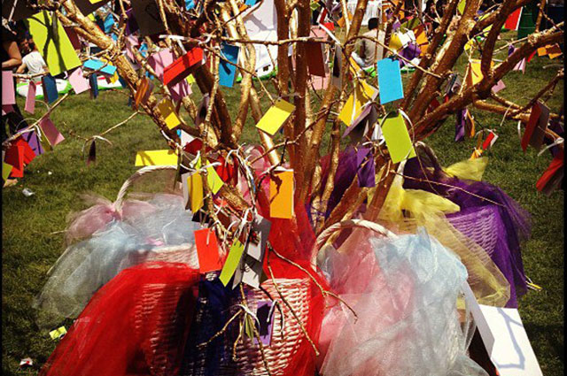 Hıdırellez dileklerini gül ağacının dalına bağlarken;
