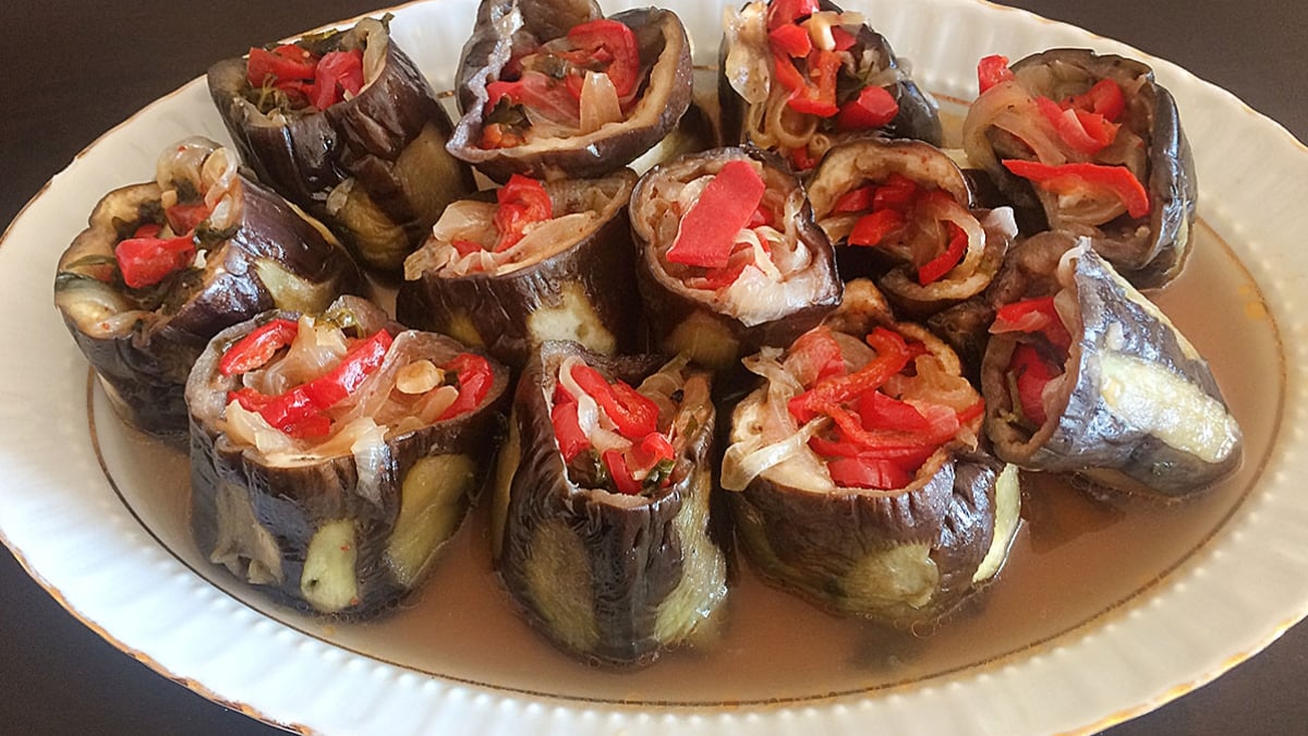 Hazırladığımız harcı patlıcanların içerisine dolduruyoruz ve bir tencereye diziyoruz. Patlıcanların yarısına kadar su koyup pişiriyoruz.