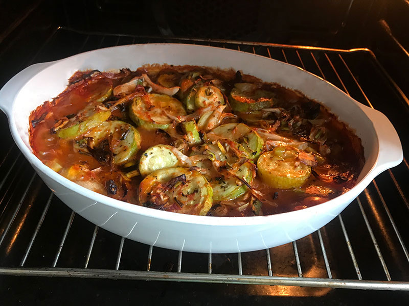 Hazırladığımız bu sosu fırın kabındaki kabakların üzerine gezdiriyoruz.