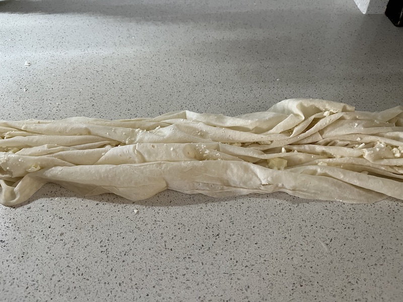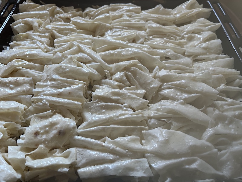- Topladığımız yufkayı iki parmak kalınlığında kesiyoruz.