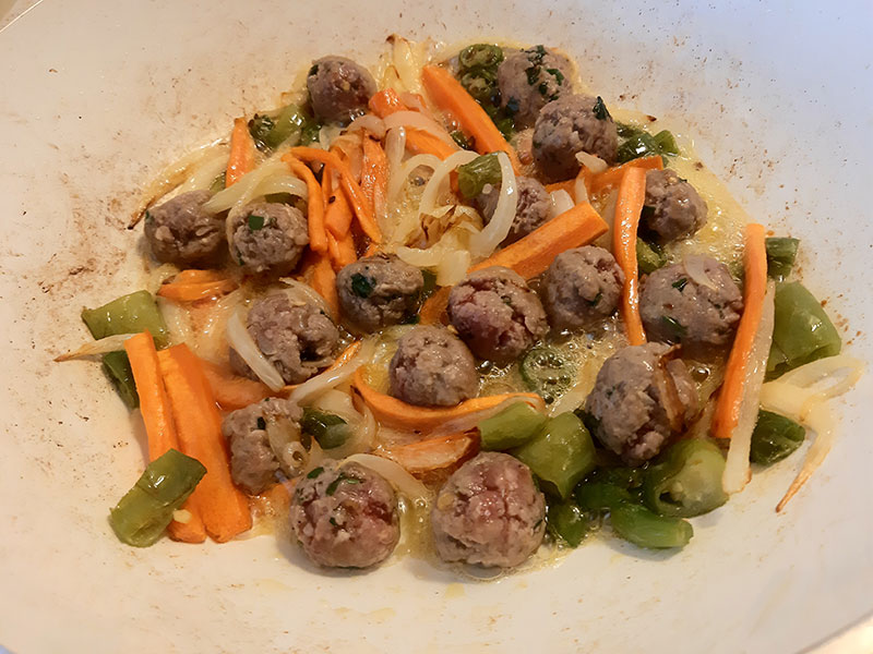 Üzerine hazırladığımız ve dinlendirdiğimiz top köfteleri atıyoruz onları da çevirerek kızartıyoruz.