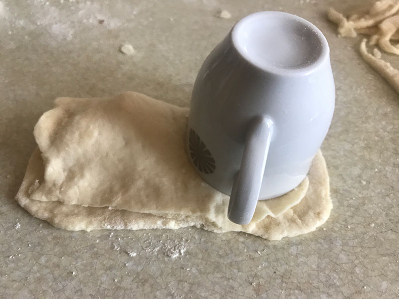 Hazırladığımız hamuru fincan yardımıyla kesiyoruz.
