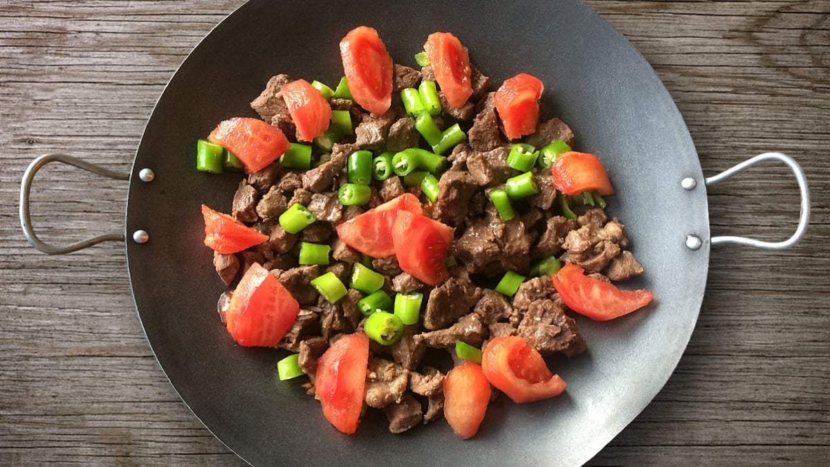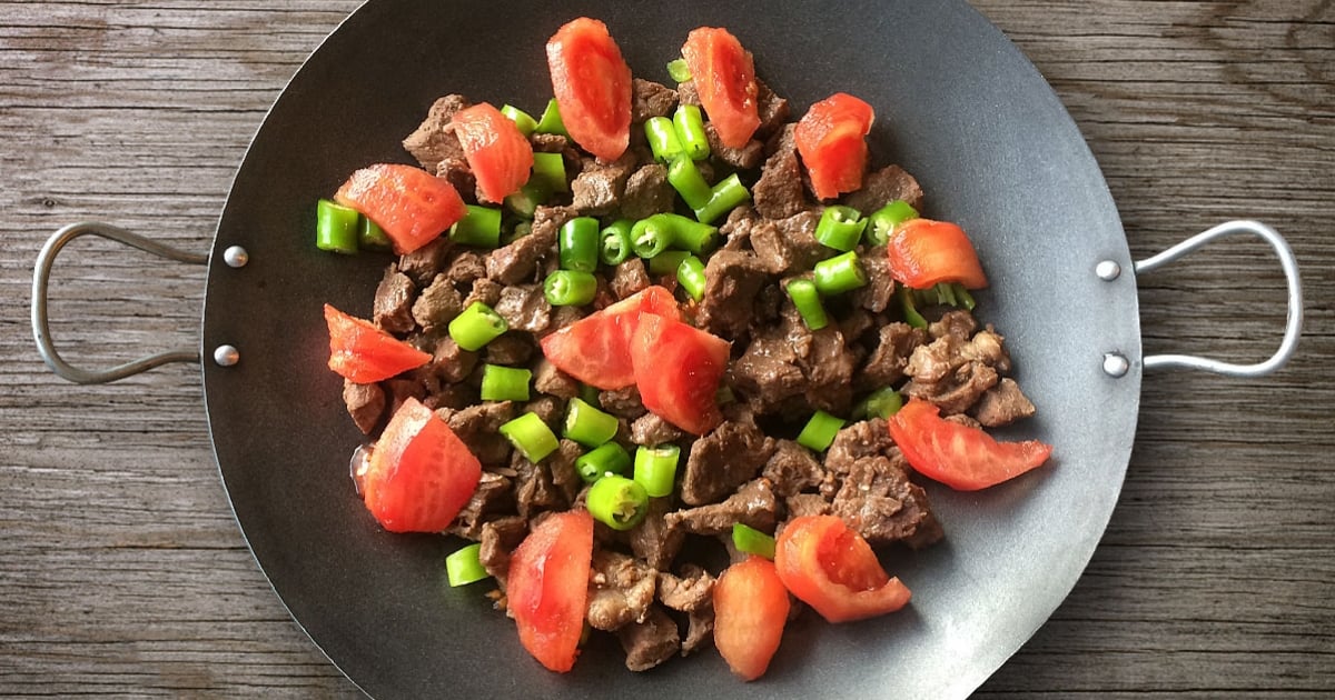 Bir sac tavada yemeklik doğanmış 1 tane soğan ve iri doğranmış 2 tane sivri biberi sıvı yağla kavuruyoruz. Yarım kilo sotelik doğranmış kuzu etlerini de ilave ederek kavurmaya devam ediyoruz. Üzerine 2 tane kabukları soyulmuş sert domatesleri dilim dilim doğruyoruz. 1 tatlı kaşığı tuz atıp harmanlıyoruz ve etler pişince servis yapıyoruz. Afiyet olsun…