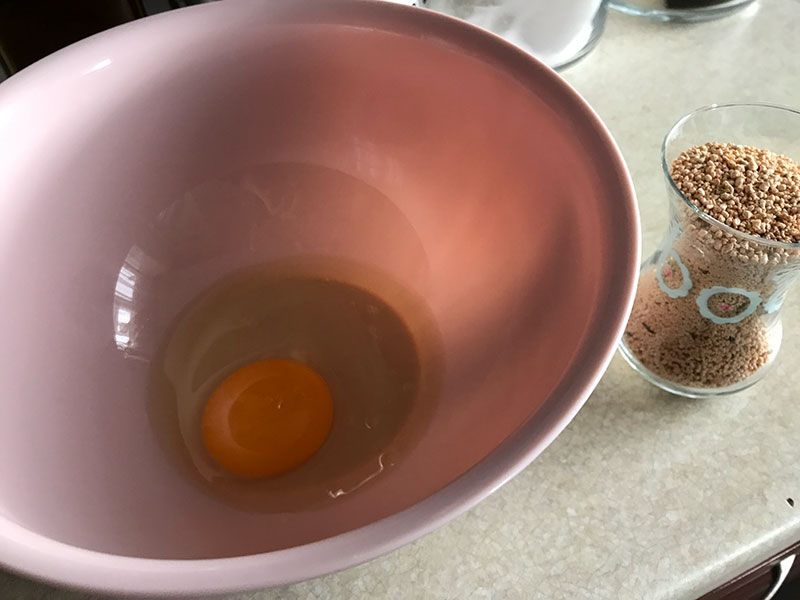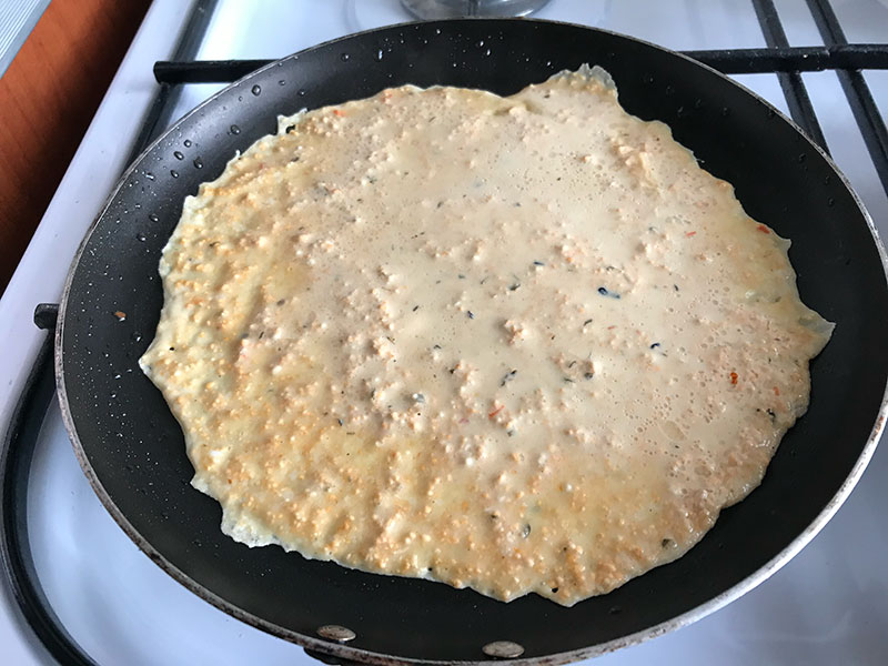 Beklettikten sonra krep tavasını havlu peçete yardımıyla biraz yağlıyoruz. Üzerine hazırladığımız harçtan bir kepçe döküyoruz.