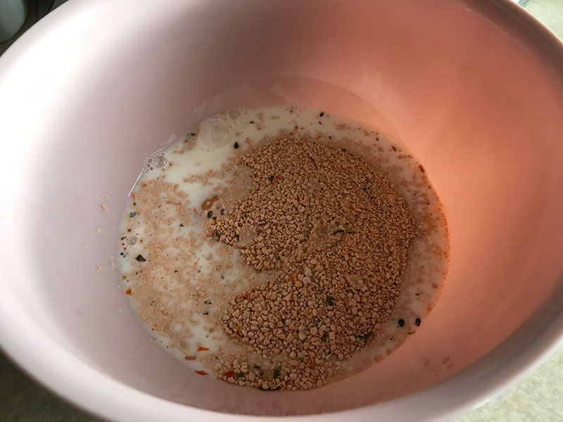 Üzerine 1 çay bardağı süt ve 1 çay bardağından iki parmak eksik tarhana ekliyoruz.