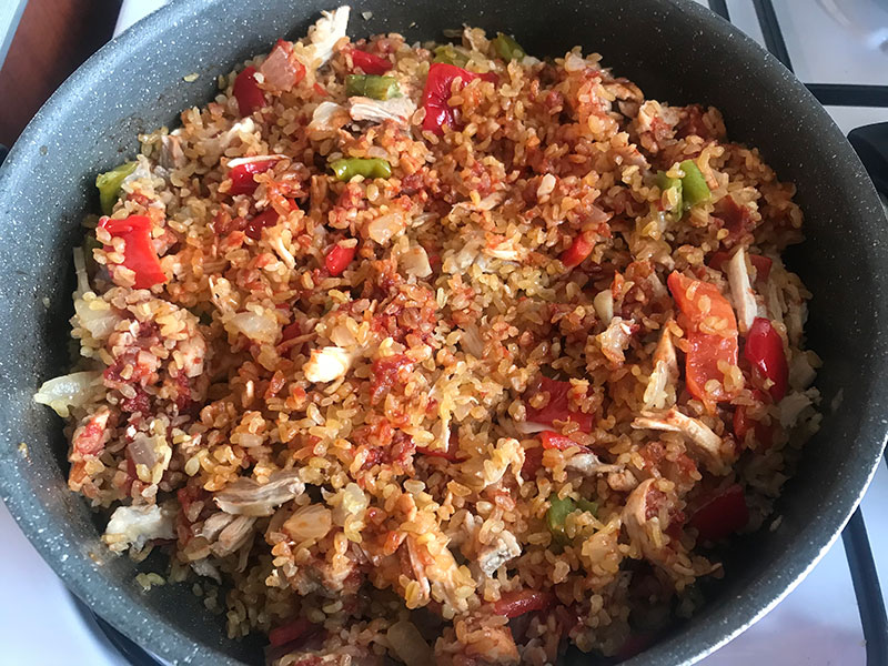 Tavuklu pilavdan vazgeçemeyenler için nefis bir alternatif tarif. Bulgur pilavını tavuklu hazırladık ve çok daha doyurucu çok daha lezzetli bir yemek haline getirdik!