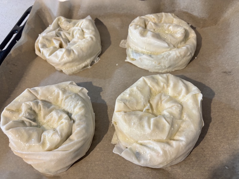 Börekleri fırına vermeden önce tepside 15-20 dakika dinlendirirseniz, yufkalar sosu daha iyi çekecektir.