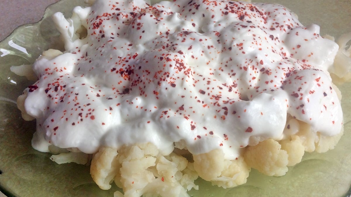 Karnabaharla yapılan en basit tarif bu belki de... Kalorisi çok düşük fakat aynı zamanda da çok doyurucu bir salata tarifi: Yoğurtlu Karnabahar Salatası tarifi