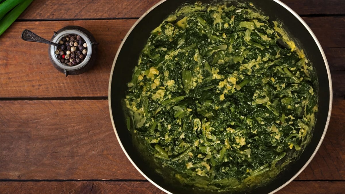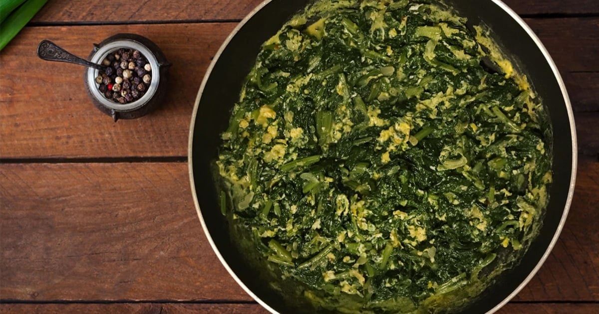 Bir tavada 1 tane yemeklik doğranmış soğanı 1 çay bardağı sıvı yağ ile kavuruyoruz. Üzerine pazıları atıyoruz. 1 çay kaşığı karabiber, yarım tatlı kaşığı tuz ve yarım tatlı kaşığı pul biber atıp kavuruyoruz. Üzerine 5 tane yumurta kırıp karıştırarak pişiriyoruz.